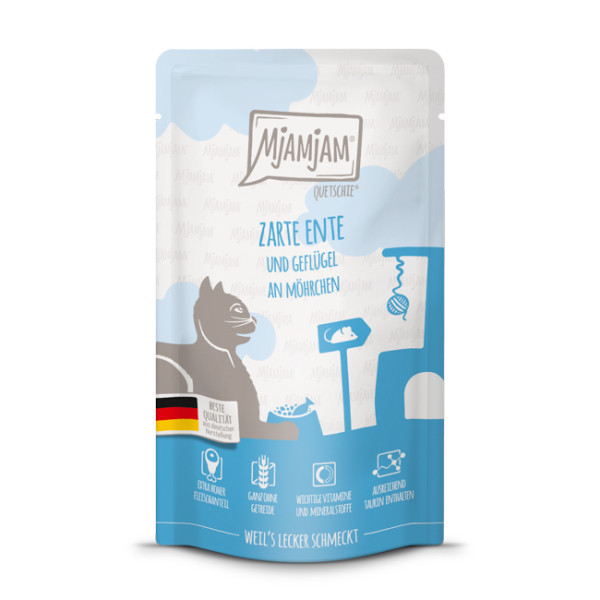 MjAMjAM Cat delikatna kaczka i drób z pysznymi marchewkami-mokra karma dla kotów w saszetce 125g