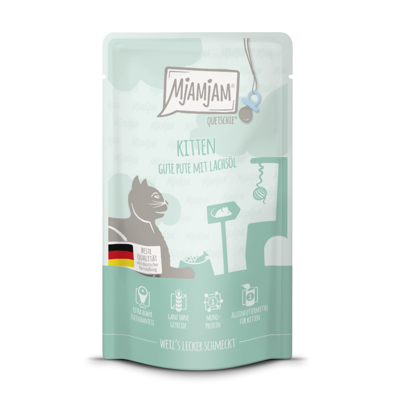 MJAMJAM KITTEN – Indyk z olejem z łososia 125 g (saszetka dla kociąt)