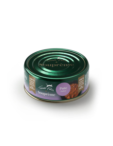 Podaruj swojemu kotu prawdziwą przyjemność prosto z natury. Terra Felis Souprème Turkey to delikatna, kremowa zupa stworzona w 100% ze składników jakości spożywczej (human grade). Receptura opracowana przez doświadczonych weterynarzy powstaje w naszym własnym zakładzie na bawarskiej wsi, gdzie rygorystyczne kontrole jakości gwarantują najwyższy standard każdego opakowania.
